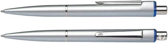 Klasikinis SCHNEIDER prekinio ženklo tušinukas paspaudžiamu mechanizmu, metalizuotos sidabro spalvos paviršiumi ir spalvoto plastiko detale. Metalinis galiukas ir prisegimas. Pagaminta Vokietijoje.