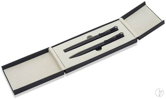 Metalinių rašymo priemonių rinkinys, kurį sudaro tušinukas ir rašiklis. Supakuota dovanų dėžutėje.